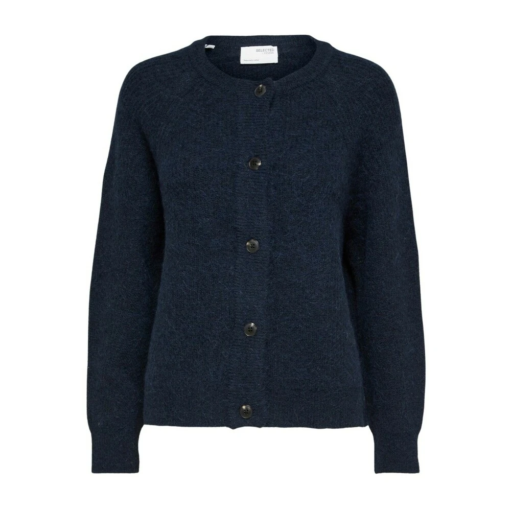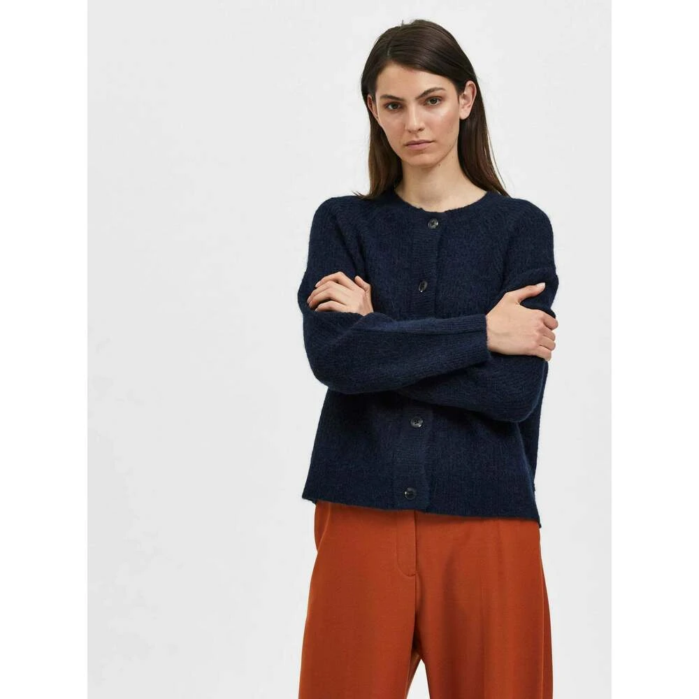 Lulu LS Knit Short Cardigan fra Selected femme i fargen Dark Sapphire Melange. En tidløs og deilig, kort strikket cardigan som lukkes med store knapper. Rund hals med ribbestrikk. Rett i modellen og med ribbestrikk rundt ermene og nederst på bolen. Strikket cardigan Kort lengde Lukkes med knapper Rund hals Rett passform Ribbestrikkede mansjetter Normal i størrelsen Modellen er 177 cm høy og bruker størrelse S/36. Materiale: 39% Ull, 24% Polyester, 20% Alpakka, 15% Nylon, 2% Elastan.Kan håndvaskes Om merketSelected Femme er et Danmarksbasert brand som lager kolleksjoner som glir rett inn i garderoben du allerede har, men tilfører den litt edge. Dette er et merke som streber etter å lage klær som både er tidløse, men likevel føles moderne og trendy – og tanken er alltid kvalitet foran kvantitet. De vil heller at du skal ha færre plagg du elsker, bruker masse og tar god vare på – enn å ha mange plagg du kun bruker et par ganger. Med klær fra Selected Femme er du alltid fashionabel, med en garderobe fylt av kvalitetsplagg som varer.