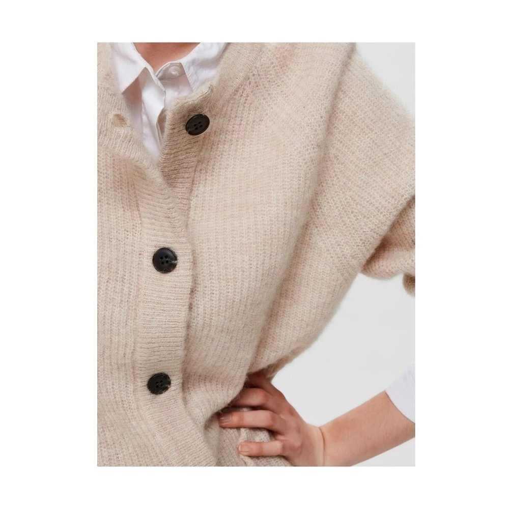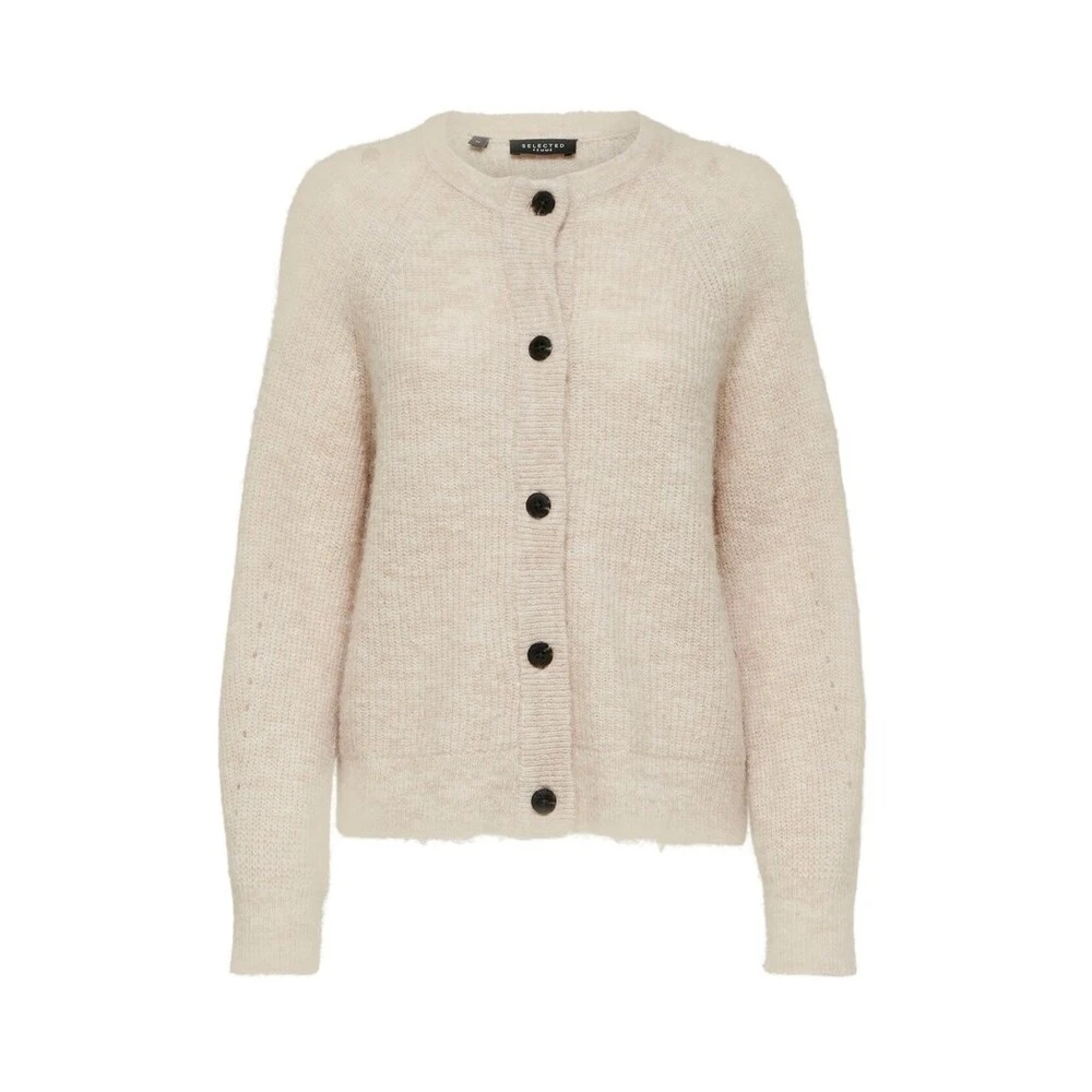SLFLULU Cardigan Selected Femme. Det er en kort cardigan. Materialet er en blanding av myke og alpakka ull. Det har ribbet mansjetter og kant. Jakken har en knappĂĄpning ved fronten.