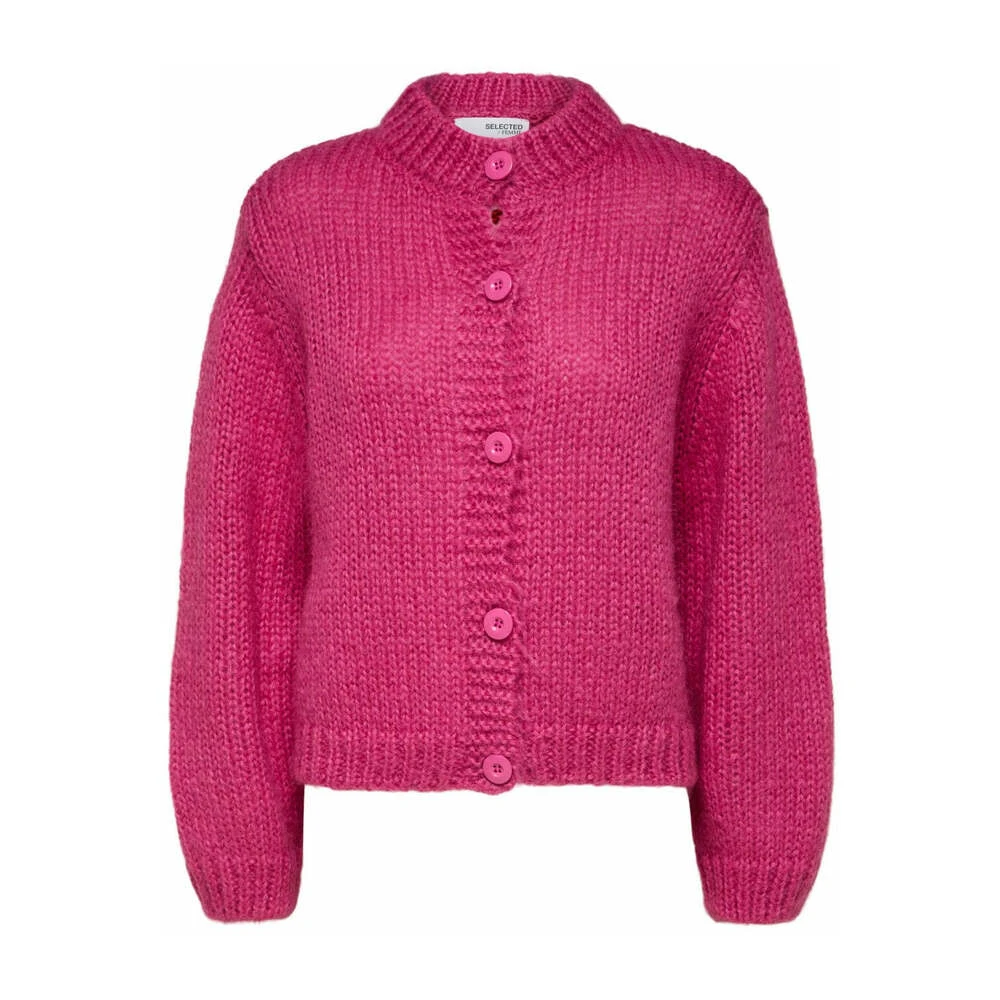 Suanne Ls Knit Short Cardigan fra Selected Femme. Pakk deg inn i en av sesongens mest behagelige cardigans. Cardiganen er laget i et klassisk, avslappet snitt med voluminøse ermer som vil holde deg varm og knappestolpe foran. Om sommeren er denne superfin over en kjole på kjølige dager, og på høsten er den perfekt å kombinere med en ullkåpe, mørk denim og et par spisse boots. Strikkejakke Strikket, ribbet krage Lave skuldre Lange, voluminøse ermer Ribbekanter Relaxed fit