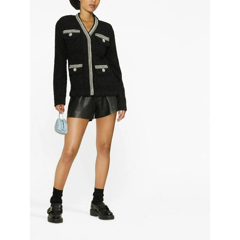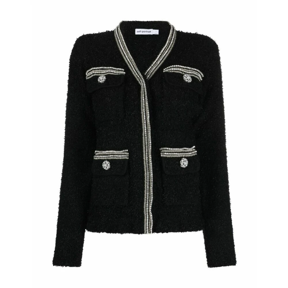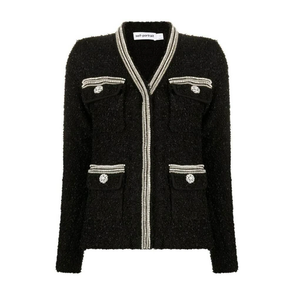 Selvportrettgensere Svart krystallpyntet bouclé-jakke fra selvportrett med svart, bouclé konstruksjon, krystallpynt, fire klafflommer foran, frontknappfesting, lange ermer og rett hem.