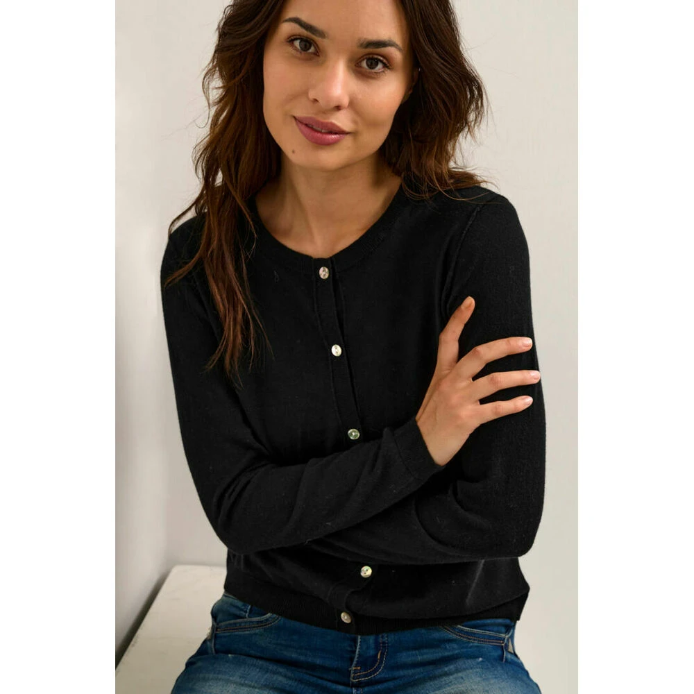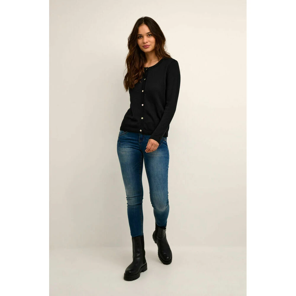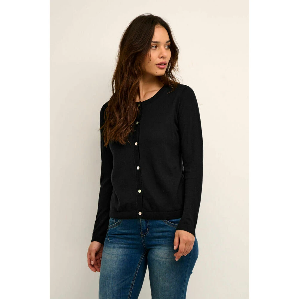 Anva er en nydelig strikket Cardigan fra Cream i fargen Sort. Den har rund hals . Finnes i flere farger Lengde i st. M: ca. 59 cm. Innhold: 80% bomull, 20% Cashmere Vask: 30*