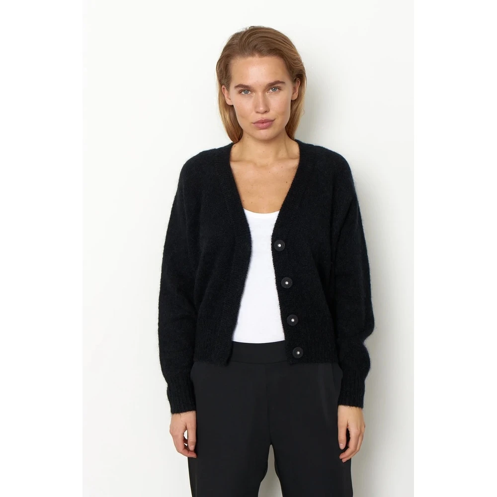 Second Female – Brook Knit Boxy Cardican Slouchy cardigan. Modellen er laget i en myk og elastisk mohair-ullblanding med lett luftig tekstur. Kommer med v-hals og skjulte trykkknapper. Raglanermer med ribbestrikkede mansjetter. Ribbekant i halsen, stolpen og nederst. Løs, avslappet passform. 34% Mohair 34% Ull 27% Polyamid 5% Elastan