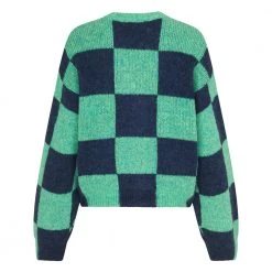 Superskjønn cardigan i grønn og blå ruter. 20% ALPACA/45% ACRYLIC/35% POLYAMIDE
