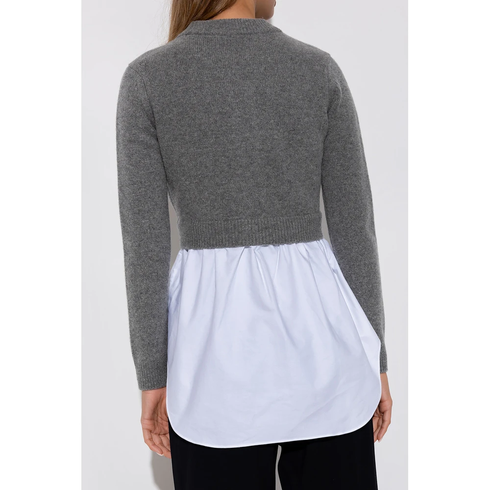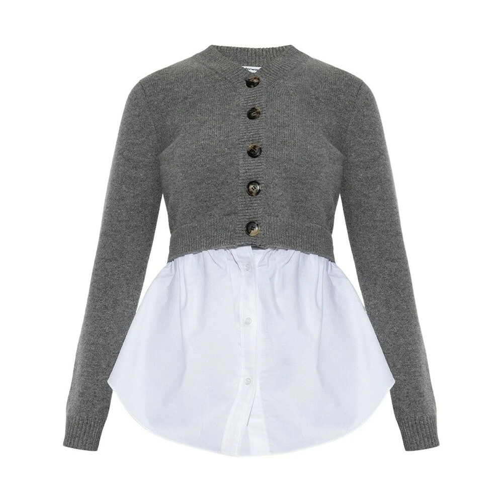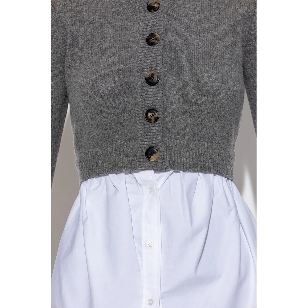 Grå og hvit, reversibel cardigan fra T av Alexander Wang. Denne V-hals-designen festes med knapper og har et grått panel laget av merinoull øverst og hvitt bomullspanel ved hemmen.