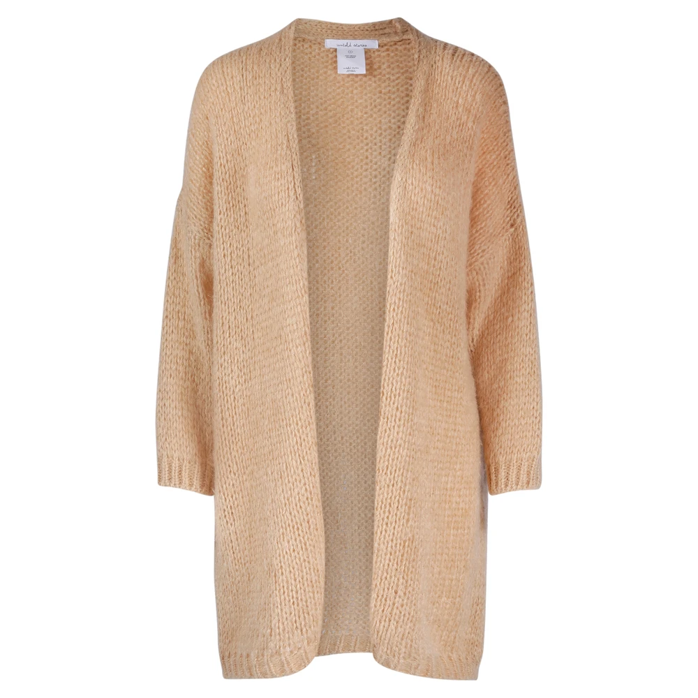 Denne cardiganen er spunnet i Italia av en nydelig mohair blanding. Den nydelige kamel fargen passer til det aller meste! Vaskes på 30 °C Lengde 84 cm.