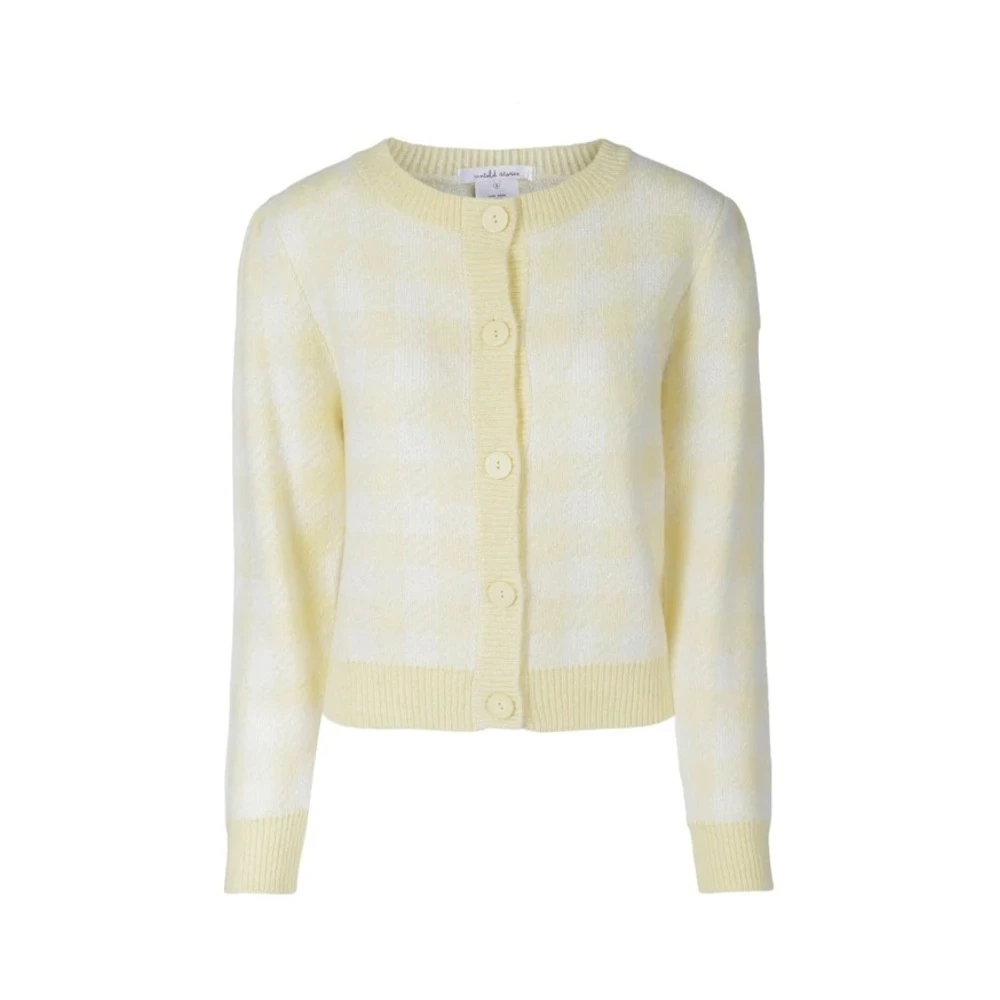 Florie Jacquard Cardigan har et lett oppblåste ballongermer, knapper foran og et vakkert rutete jacquardmønster. Den er designet litt slim fit. Passer perfekt sammen med favorittbuksen din eller over en kjole. Modellen er 178 cm og bruker størrelse Small. Lengde på cardigan for størrelse Small: 55 cm. Farge: Lemon Checked Materiale: 47% Akryl, 27% Mohair, 26% Polyamid