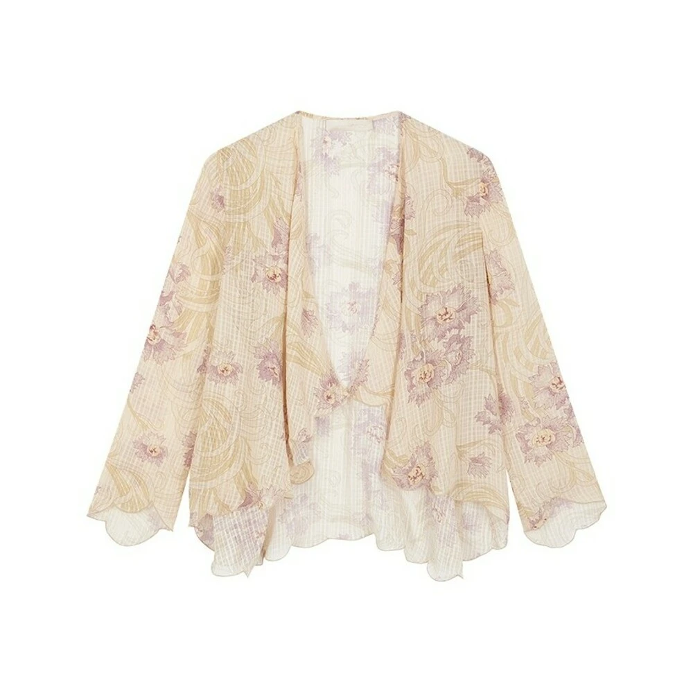 Se for deg deg selv i denne lange flytende vest -cardiganen med en raffinert pyjamas stil, med pene, falmede blomster som på et vintage stoff. Å brukes tilfeldig over en t-skjorte og over strandbukser. Femininitet og eleganse garantert. Viskose og silke Voile flytende vest cardigan Lange ermer flettet broderi ved hemlinjen og bunnen av ermene som ikke er foret. Modellen har på seg en størrelse 36. Sammensetning: Hovedmateriale: 60% viskose, 40% silke