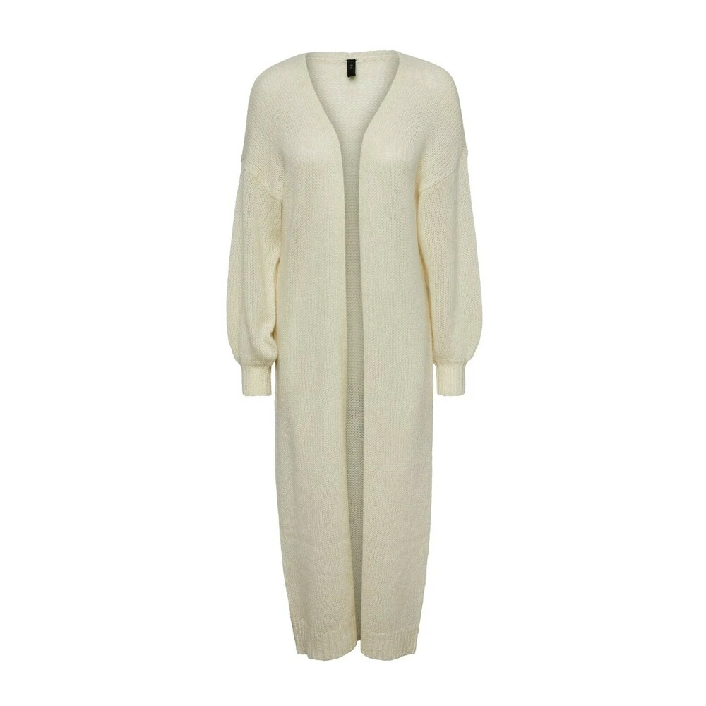 Lang cardigan i ullblanding. Knappeløs. Farge: Star White Materiale: 38% Ull, 32% Alpakka, 30% Polyester